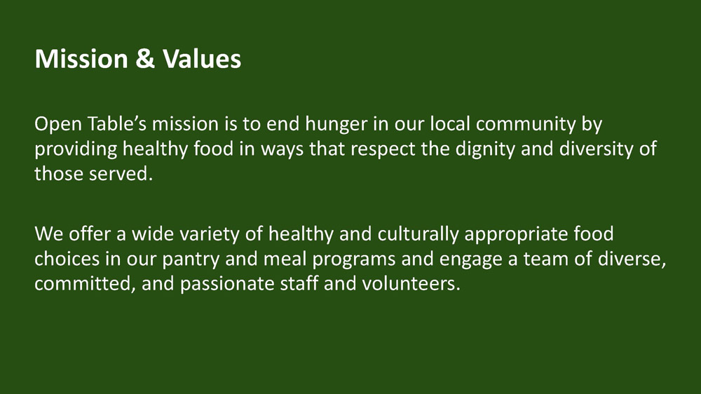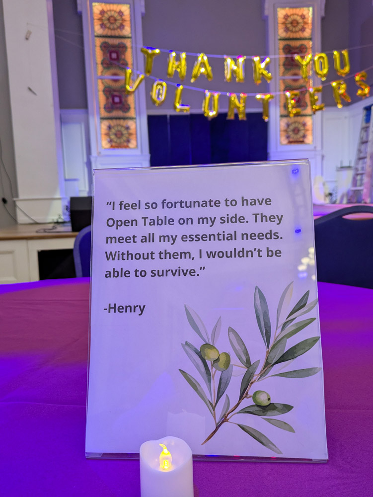 Executive Director Alex DePalo opened the evening by highlighting this year’s theme: gratitude. With nearly 600 active volunteers, Open Table simply could not operate without the generous time, energy, and commitment of its volunteer force.
