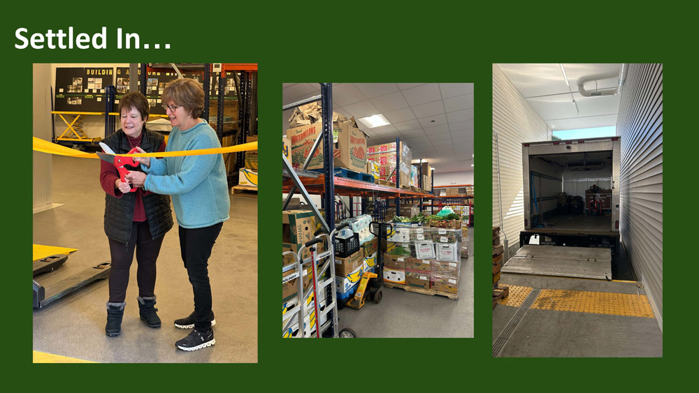 Mary-Anne Schubert helps Jill with pantry distribution set-up for client hours and serves on distribution teams.