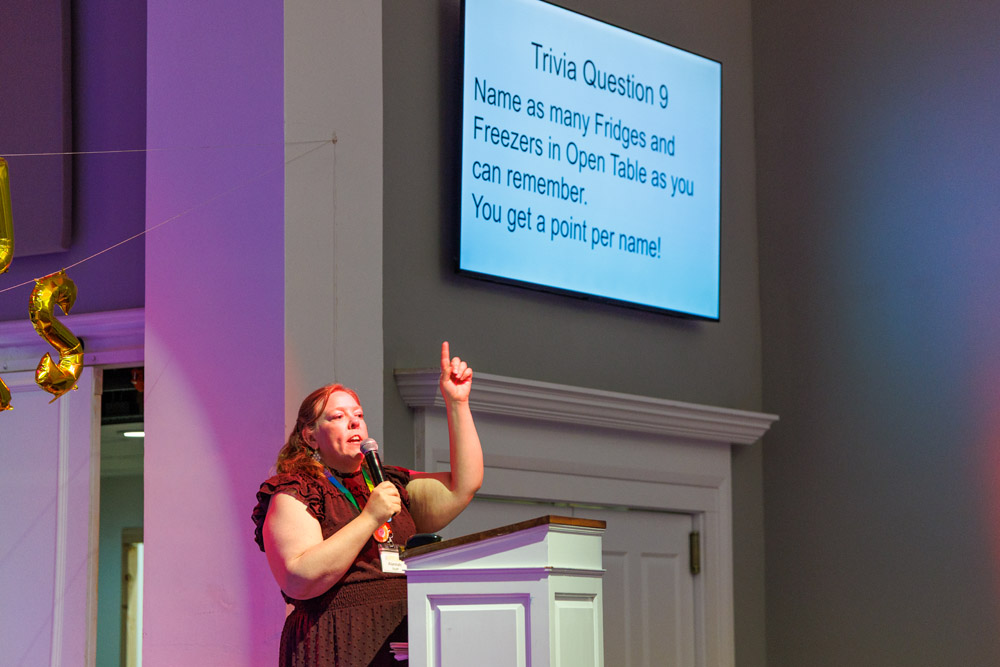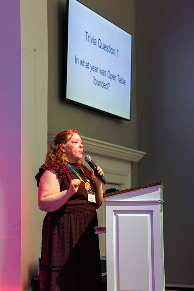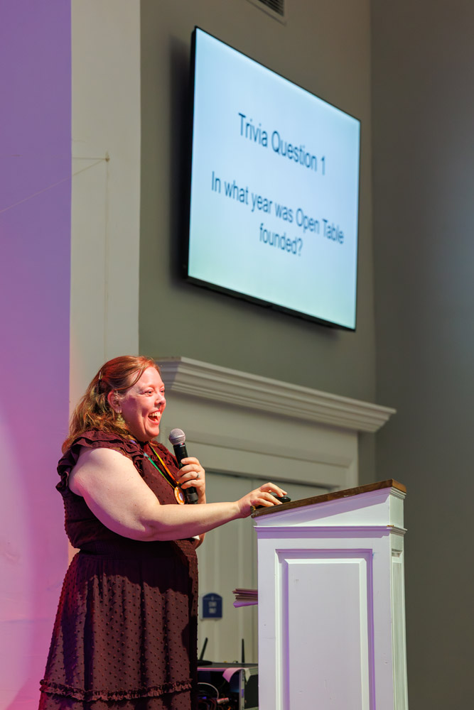 Throughout the evening, mistress of ceremonies, Alannah Gustavson, asked the table teams to answer several trivia questions related to Open Table and food. Can you beat the winning team?