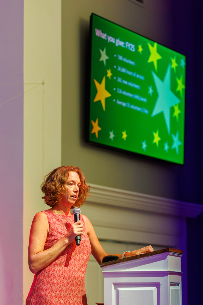 Volunteer Manager Gretchen Findlay shared inspiring statistics about our collective impact and recognized a group of dedicated volunteers who each contributed over 200 hours of service in the past fiscal year.